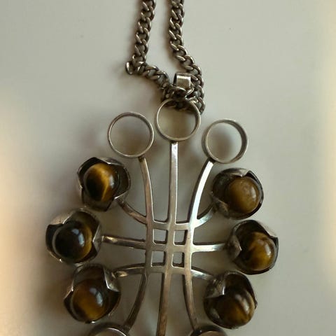 Rav er et naturmateriale og har små naturlige ujevnheter i overflaten, noe som også ses her og gir smykket karakter.