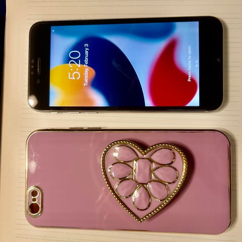 Telefonen (64 GB) er i god stand, med skjermbeskytter og deksel. Batterikapasiteten er 81 %.