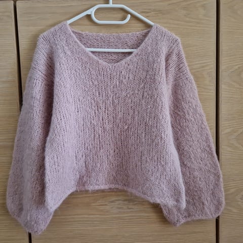 Nydelig hjemmestrikket genser i myk og varm kvalitet. Genseren har en delikat rosa farge som passer perfekt til både hverdag og koselige anledninger. Behagelig å ha på, klør ikke og gir god varme på kjølige dager.