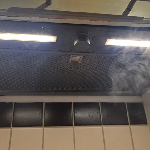 Selve kjøkkenhetten gjøres ren etter behov, med et mildt fettløsende vaskemiddel og lett fuktig klut. Bruk aldri slipende vaskemidler eller rensemidler som inneholder tynnere eller alkohol.