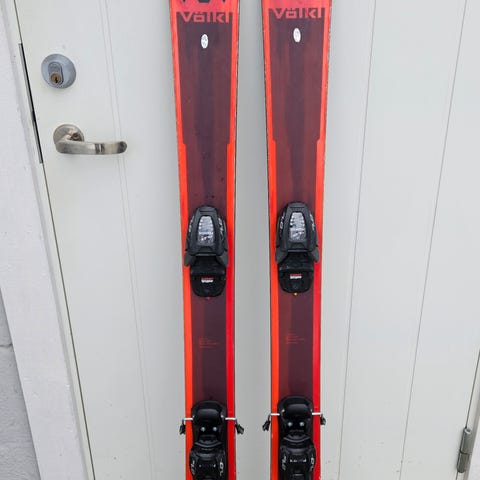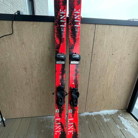 Völkl twintip ski med marker griffon bindinger. De har en god del kosmetiske skader på toppen. Men under hvor det har noe å si er de veldig fine.