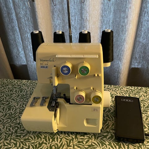 Symaskin som syr og virker men er ikke testet på alle sømmene. Selges som den er