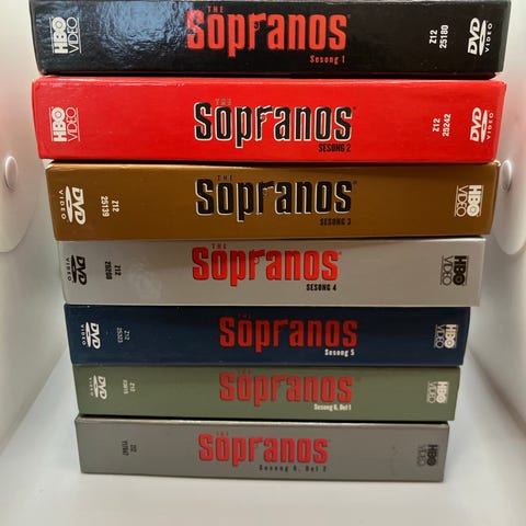 HBO The Sopranos The Complete Series Blu-ray samleboks. Inneholder hele TV-serien The Sopranos fordelt på flere Blu-ray-plater i HD-kvalitet. Esken inkluderer alle sesonger og episoder, samt flere timer med bonusmateriale som intervjuer, kommentarspor og annet ekstramateriell. Aldersgrense 18 år (BBFC) og 18 år/16 år på enkelte plater, som angitt på omslaget. Egnet for avspilling på Blu-ray-spillere som støtter regionen oppgitt på pakken.