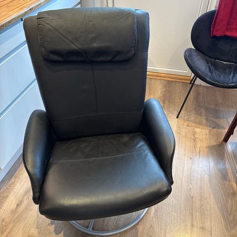 Deilige og store kosestoler i skinn søker nytt hjem
