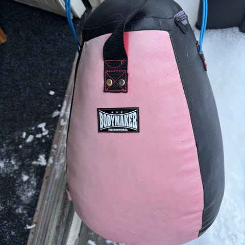 Everlast boksesekk med hansker i flerfarget design. Boksesekken har en kombinasjon av rosa og grønn farge, og leveres sammen med et par boksehansker med Everlast-logo. Egnet for enkel boksetrening og slagøvelser hjemme eller i treningsrom. Kan henges opp i tak eller stativ tilpasset boksesekker.
