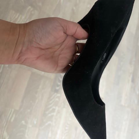 Bianco hæler i størrelse 37. Skoene er i en beige semsket overdel med spiss tå og middels høy hæl. Yttersåle i syntetisk materiale. Passer som klassiske pumps til bruk ved ulike anledninger der penere fottøy er ønsket.