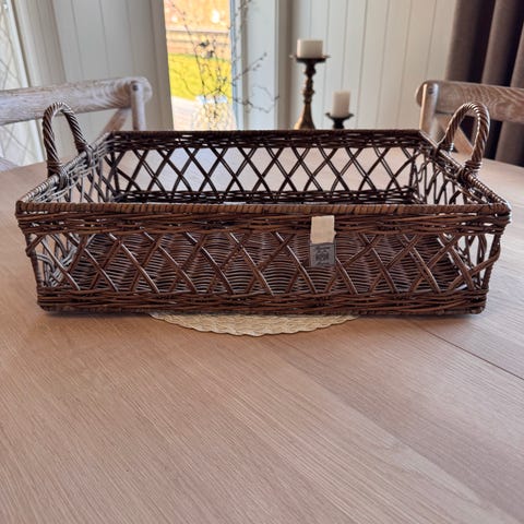 Seger 3 rottingkurver brune. Tror det er IKEA. Kvadratiske kurver på 25 x 25 cm. Materialet er flettet rotting som gir god luftsirkulasjon rundt innholdet. Selges som sett slik det vises på bildene.