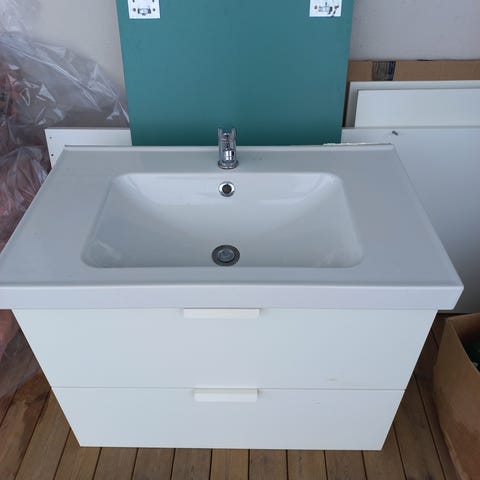 Vask og speilskap til bad med hvit toppplate
