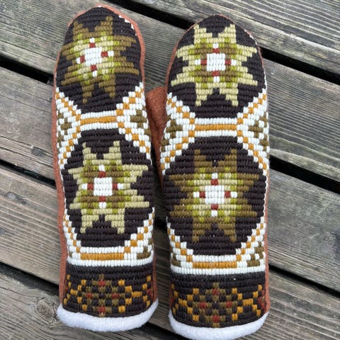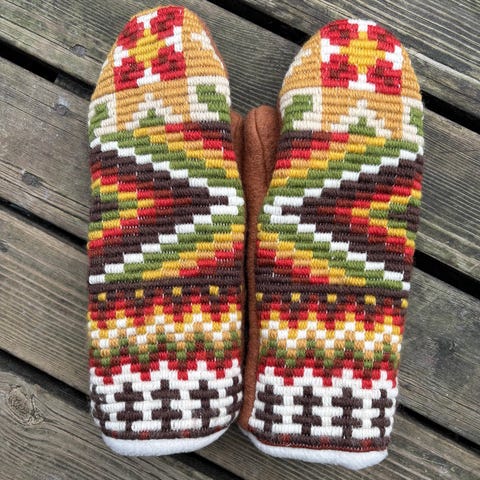 Håndlaga votter med åkle