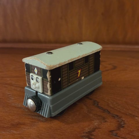 Selger en eldre Gordon-modell fra Thomas Wooden Railway.