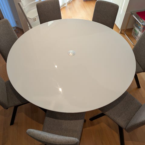 Heiii selger pent å fint bruk spisebord, spisebordet er kjøpt fra Møbelringen i mai, og følger med ileggsplstene, bordet går ikke med resten av møblene i huset derfor det selges.