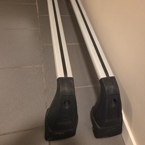 Toyota takstativ med tverrstenger i sølvfarget metall med svarte plastdeksler. Stativet består av to tverrstenger med integrert gummilist i toppen. Egnet for montering på bilens takrails eller festepunkter, avhengig av bilmodell. Kan brukes som base for montering av takboks, sykkelstativ eller annet taklastutstyr som er kompatibelt med denne typen tverrstenger. Nøyaktig passform og kompatible bilmodeller bør kontrolleres mot delenummer eller bilens brukermanual før montering.