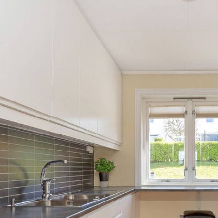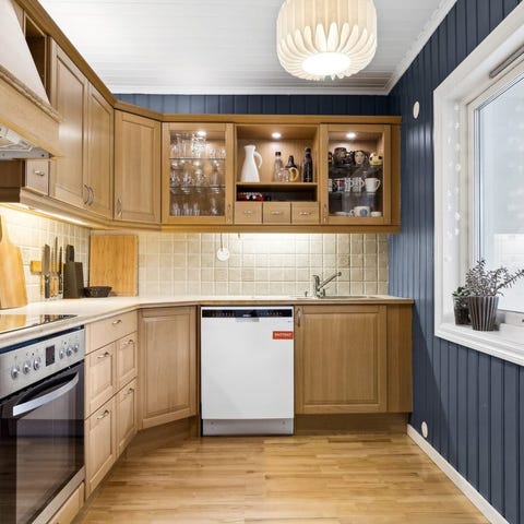 Klart for å demonteres i uke 8 (vinterferien). Behjelpelig med demonteringen, men ønsker samtidig at kjøper kan være med å bære ut. Stekeovn og øvrige hvitevarer utenom kjøleskap følger ikke med.