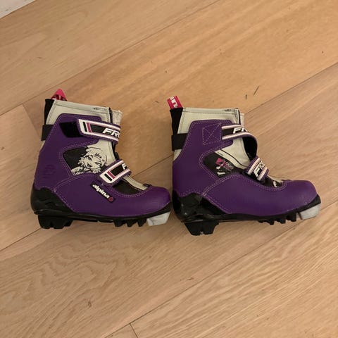 Alpina barne skisko i blå farge. Modellen har snøring foran og støtte rundt ankelen. Skoene er polstret innvendig for økt komfort og har såle tilpasset langrennsbindinger for barn. Egnet til bruk på langrennsturer og skilek for barn.