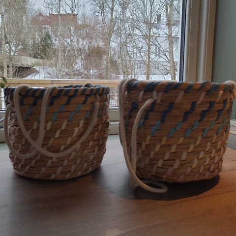 Flettet kurv med plastfolie.