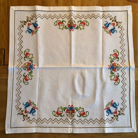 Flott juleduk i fine farger. Hel og pen, ingen flekker eller skader. Ser ut som lin. Kan sendes med PostNord for kr 69,-.