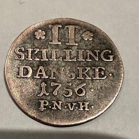 8 sklling sølvmynt 1732 / VIII skilling danske, preget på Kongsberg