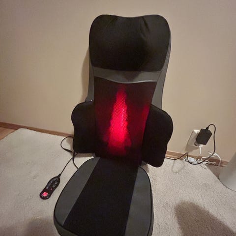 Nakkeoppheng cervical traction apparat i svart polstret materiale. Brukes til å avlaste og strekke nakken ved å ligge eller sitte med hodet i støtten. Kan festes i dørkarm eller rekkverk ved hjelp av medfølgende stropper og karabinkrok, slik illustrert på bruksanvisningen. Egnet til hjemmebruk for voksne som ønsker mekanisk strekk av nakkeområdet. Leveres med nakkestøtte og justerbare stropper for tilpasning av lengde og høyde, en s.k. ”nakkedisse/nakkehuske”.