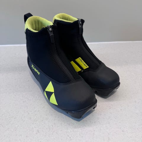 Fischer XJ Sprint langrennsstøvler i svart og gul farge. Modellen har snøring med glidelås-lukking over for å beskytte mot snø og fukt. Innsiden har polstret og myk gul lining for økt komfort. Sålen er utformet for klassisk langrenn og er kompatibel med vanlige junior-/turskibindinger (NNN/Turnamic-typeløsning, se bilder av såle). Egnet som langrennsstøvler til barn eller junior.