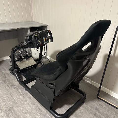 Kjøpte for to måneder siden brukten en eller to ganger Racing sete hvis man vil ta med ratt å pedal koster 100kr ekstra å må hentes med en gang