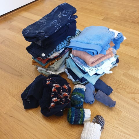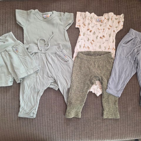 5 plagg. Brukt/pent brukt. Noe ull, noe bambull. Alt fra joha bortsett fra den grønne tightsen, den er name it og har litt slitasje på det ene kneet.