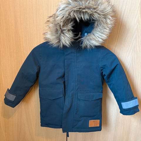 Flott Kaxs vinterjakke fra Kappahl i størrelse 92. Mørk blå farge. Jakken har hette med fuskepels som er avtagbar, samt flere lommer og vindstopper nederst. Materialet er tilpasset for å gi varme og komfort til barnet. Fremstår som svært pent brukt.