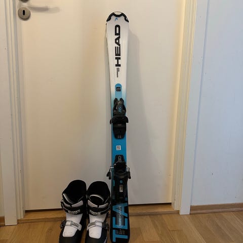 Dynastar Team Speed alpinski i blå og hvit farge. Skiene har integrerte Elan bindinger.