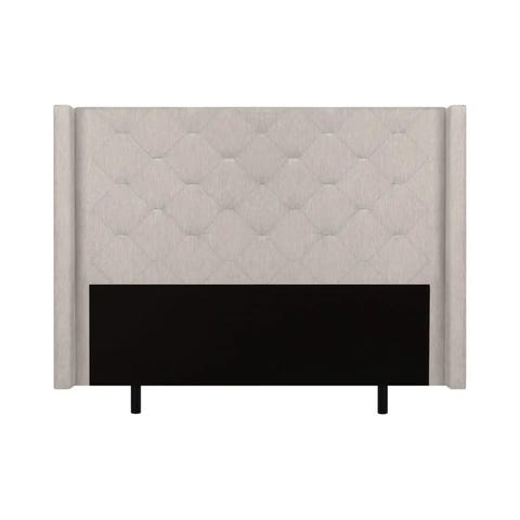 Bohus Signature Collection sengegavl og seng i grå tekstil. Sengegavlen har et vattert, rutemønstret design og er trukket i et melert grått stoff. Passer bak dobbeltseng, og gir støtte til rygg og hode når man sitter i sengen. Tekstiltrekket har myk overflate og nøytral farge som kan kombineres med ulike typer soveromsinnredning.