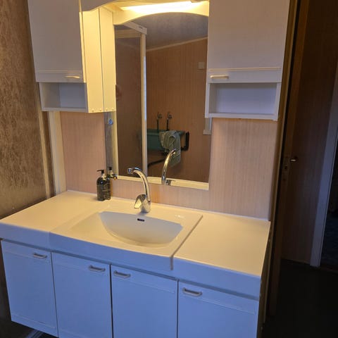 Baderomsinnredning med servantskap og overskap hvit