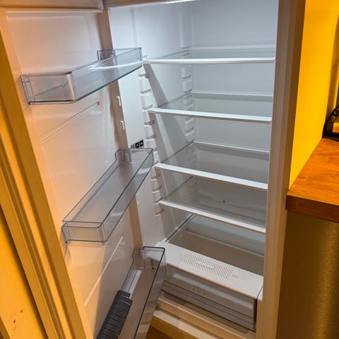 Plassbesparende, da den bare er 40 cm bred. Dybde 60 cm, høyde 85 cm.
