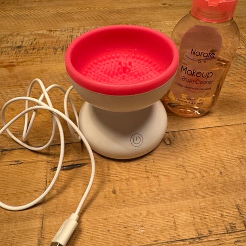 Enheten er laget for rengjøring av sminkekoster og lignende makeup-verktøy. Apparatet har høyhastighetsrotasjon som renser børstene fra innsiden og ut. Børstene plasseres i beholderen med rensevæske, og maskinen roterer for å fjerne sminkerester.