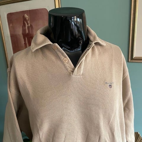 Gant genser for herre i størrelse XL. Genseren er blå og har V-hals. Materialet er en cotton wool, som gir et mykt og behagelig plagg egnet til bruk over skjorte eller T-skjorte. Klassisk Gant-logo er plassert på brystet. Passer til hverdagsbruk og mer formelle anledninger avhengig av hvordan den kombineres med øvrige plagg.