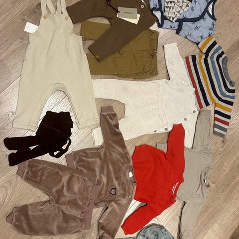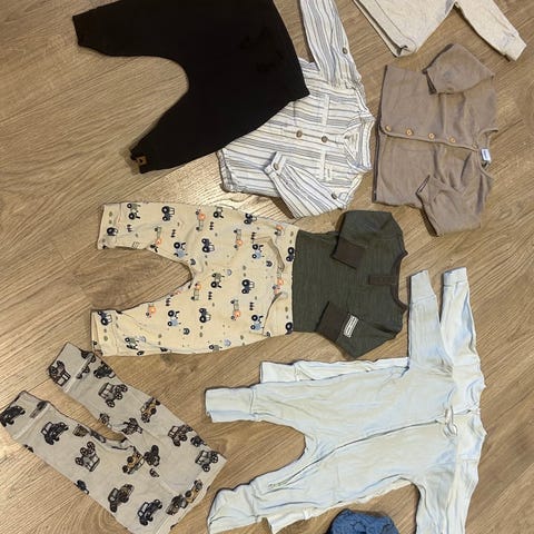 Selger en fin klespakke med str 62 til gutt. Her er det 4 pysjer, 3 sett, ullbody, solhatt, body og joggebukse bla. Ta gjerne kontakt dersom du lurer på noe og legg gjerne inn bud ☺️