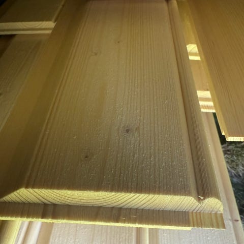 Billig dobbelfals kledning med spor 19x148 ca 2000m av denne selges for 15kr. meteren. Er ubehandlet kan både brukes til kledning å rupanel. 47357526