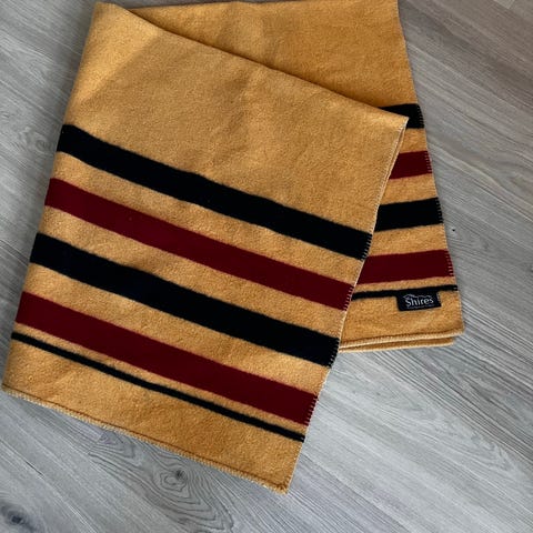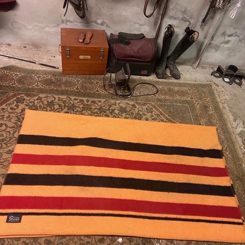 Shires Newmarket Blanket ullteppe i 100 % ull. Minimalt brukt, men er av en eldre type. Er i god stand, og har masse bruk igjen. Se bilde for en liten flekk uten ull.