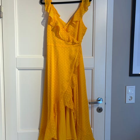 Cubus sommerkjole for dame i størrelse M. Kjolen er flerfarget med mønster, og er laget i polyester. Passer til bruk på varme dager, ferie og hverdagsbruk. Lengden går omtrent til leggen, med kort erm og v-utringning. Materialet er lett og faller mykt.