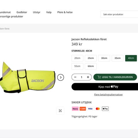 Non-stop freemotion i størrelse 9. Lite brukt, selges da det ble feil passform, brukt til en skotsk hjortehund.
