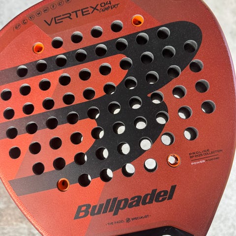 Aldri brukt Bullpadel Ionic Power padelracket i grønn og svart. Racketen har diamantformet hode med perforert trefflate og strukturert overflate. Modellen er merket som Power og er utviklet for spillere som ønsker en racket med fokus på kraft. Leveres med matchende Bullpadel-futeral som beskytter racketen under transport og oppbevaring.