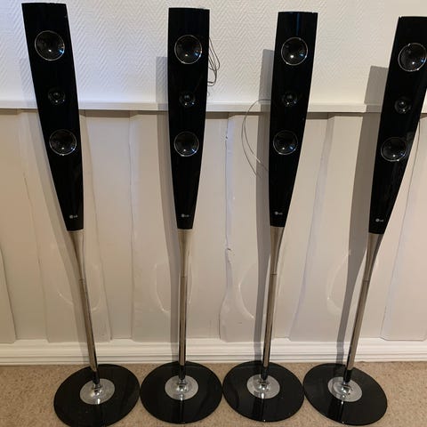 4 gulvhøytalere, senterhøytaler og subwoofer.