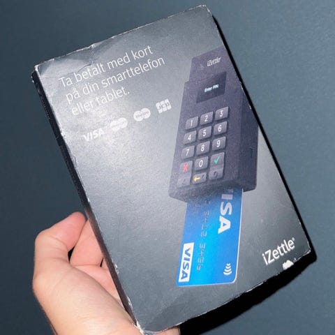 Kortterminal i hvit farge med numerisk tastatur og display. Enheten har kontaktløs-symbol på fronten og er egnet for lesing av betalingskort. Passer til bruk i mindre virksomheter eller ved mobilt salg der det er behov for enkel kortbetaling.