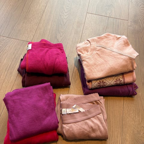 Fin ullpakke til jente, samt 2 sett superundertøy. Og 2 par ullsokker. Størrelsene er avbildet, dreier seg stort sett om str 140 / ca 10 år. Selges samlet.