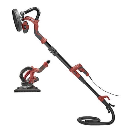 Yeeq tak-/vegghøvel gipssliper med 750 W motor og slipeskive på Ø215 mm. Elektrisk gipssliper beregnet for sliping av gipsplater i tak og på vegg. Leveres med teleskopstang for økt rekkevidde og fleksibel sugeslange for tilkobling til støvsuger.