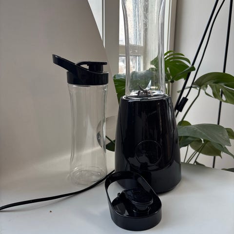 OBH Nordica blender med avtakbar drikkeflaske i plast. Basenheten er i svart plast med integrert ledning. Blenderen leveres med en gjennomsiktig flaske som kan brukes både til miksing og som drikkeflaske med lokk. Egnet til tilberedning av smoothies, shakes og andre drikker direkte i flasken for enkel bruk hjemme eller på farten.