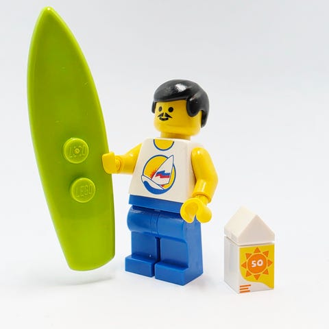 Tittel: LEGO surfer minifigur med surfebrett