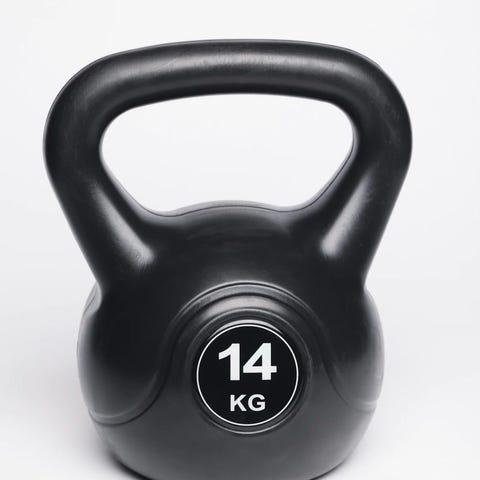 Kettlebell på 8 kg i rosa metall med håndtak i metall. Egnet til styrketrening, funksjonell trening og hjemmetrening. Formen gjør at den kan brukes til ulike øvelser for både overkropp og underkropp.