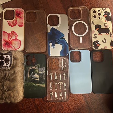 Apple telefondeksel i silikon i fargene svart og mørk blå. Dekslene har utskjæring til kameramodul og gir beskyttelse rundt kantene på telefonen. Ett av dekslene har integrert grip- og støttefunksjon på baksiden. Passer til iPhone-modeller med stor kameramodul (se bilder for form og utskjæring). Egnet for daglig bruk for å beskytte telefonen mot riper og mindre støt.