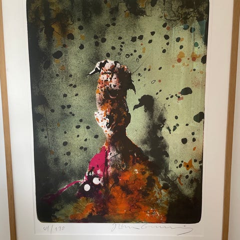 Selger et vakkert litografi av Elisabeth Werp, Mot ny vår. Kunstverket er profesjonelt innrammet med art glass (refleksfritt og UV-beskyttende) og har en mørk brun ramme som passer motivet svært godt.