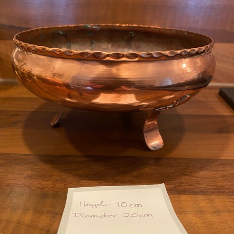 Pen og solid kobberpotte – trolig fra India (1950–70-tallet)