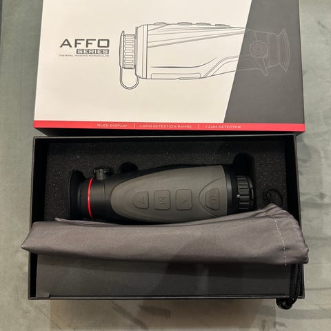 Med eske og alt tilbehør, IR-lampe, ringer, etc.