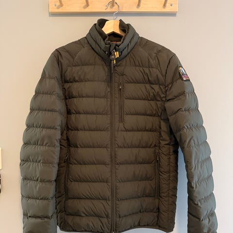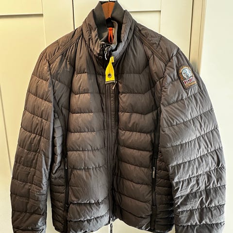 Godt brukt dunjakke. Mye jakke igjen, men litt slitt. Har også et lite hull på ene armen (se bilde), så jakken er litt flat i det området.